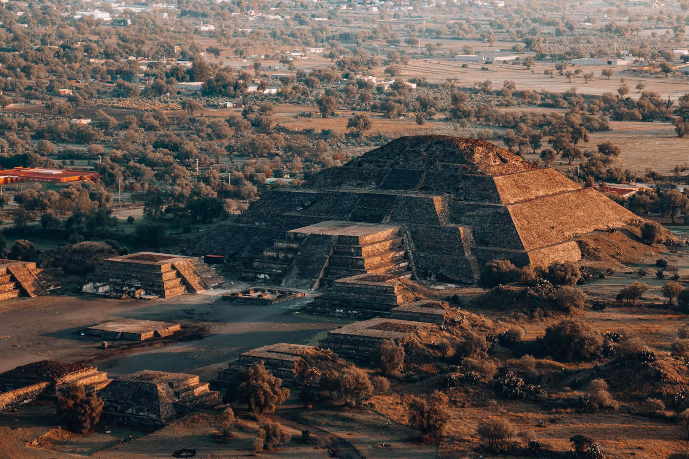 Das mit der Gottwerdung hat jetzt nicht wirklich geklappt - aber spirituell ist Teotihuacán irgendwie schon. Allein die Tatsache, dass Menschen vor Jahrhunderten riesige Pyramiden in diese Hochlandebene hineingesetzt haben. Einfach so, ohne dass sie einen anderen funktionalen Zweck wie z.B. die Beherbergung von Gräber oder Schätzen haben. Das macht Teotihuacán besonders. Denn von innen bestehen sowohl die Sonnen- als auch die Mondpyramide komplett aus Lehm! Und beide sind wirklich riesiger, als sie auf Bildern aussehen mögen! Oder von oben.