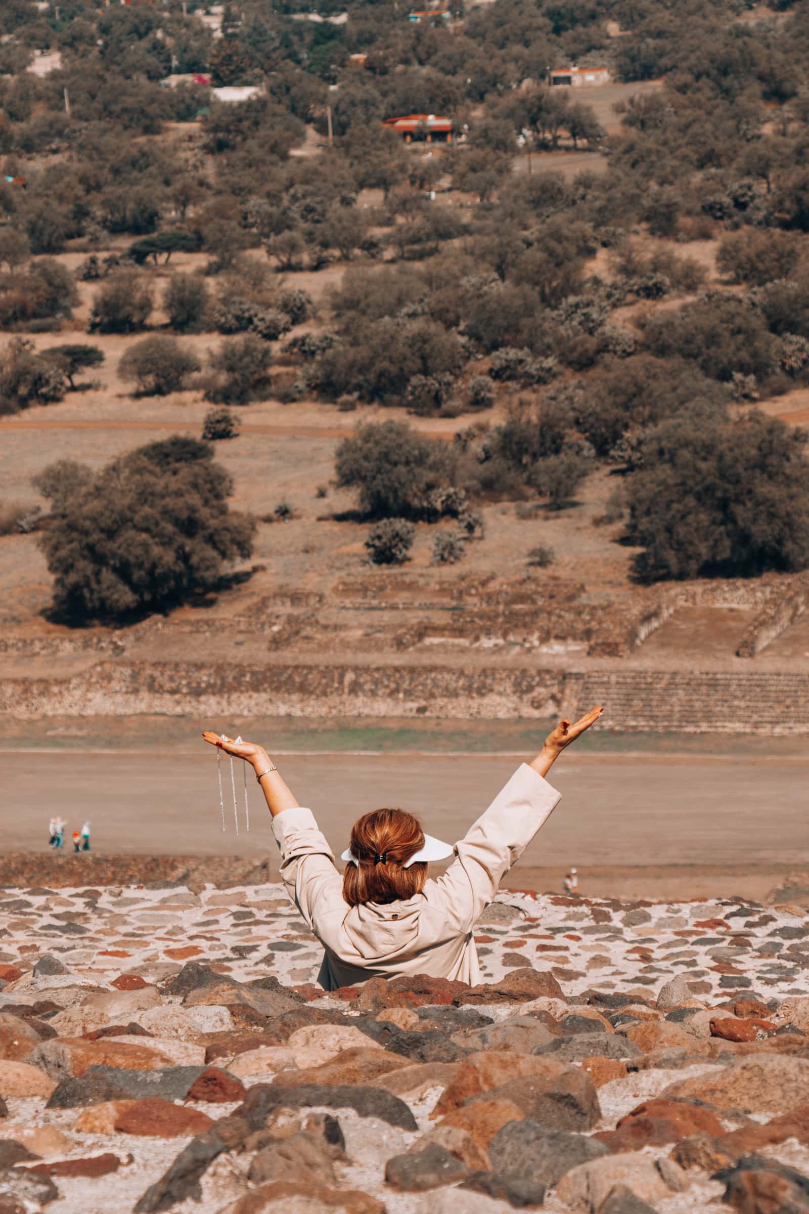 Oben auf der Sonnenpyramide kann man dann die Aussicht genießen. Oder Energie tanken. Spirituelle laden hier nämlich gerne ihre Akkus auf. Die Spitze der Sonnenpyramide im speziellen gilt ja als energetischer Ort. So hoch oben. In gleißendem Sonnenlicht. Auch wenn ich Spiritualität wirklich nicht abgeneigt bin - ich hab‘ nix von Energie gemerkt. Mag aber auch daran liegen, dass ich mich erstmal ’ne halbe Stunde keuchend von der Rennerei nach oben erholen musste.