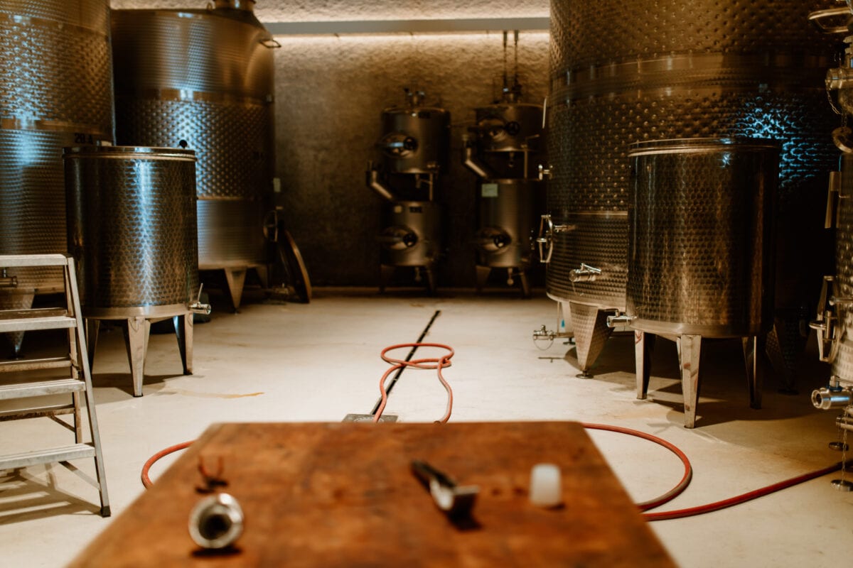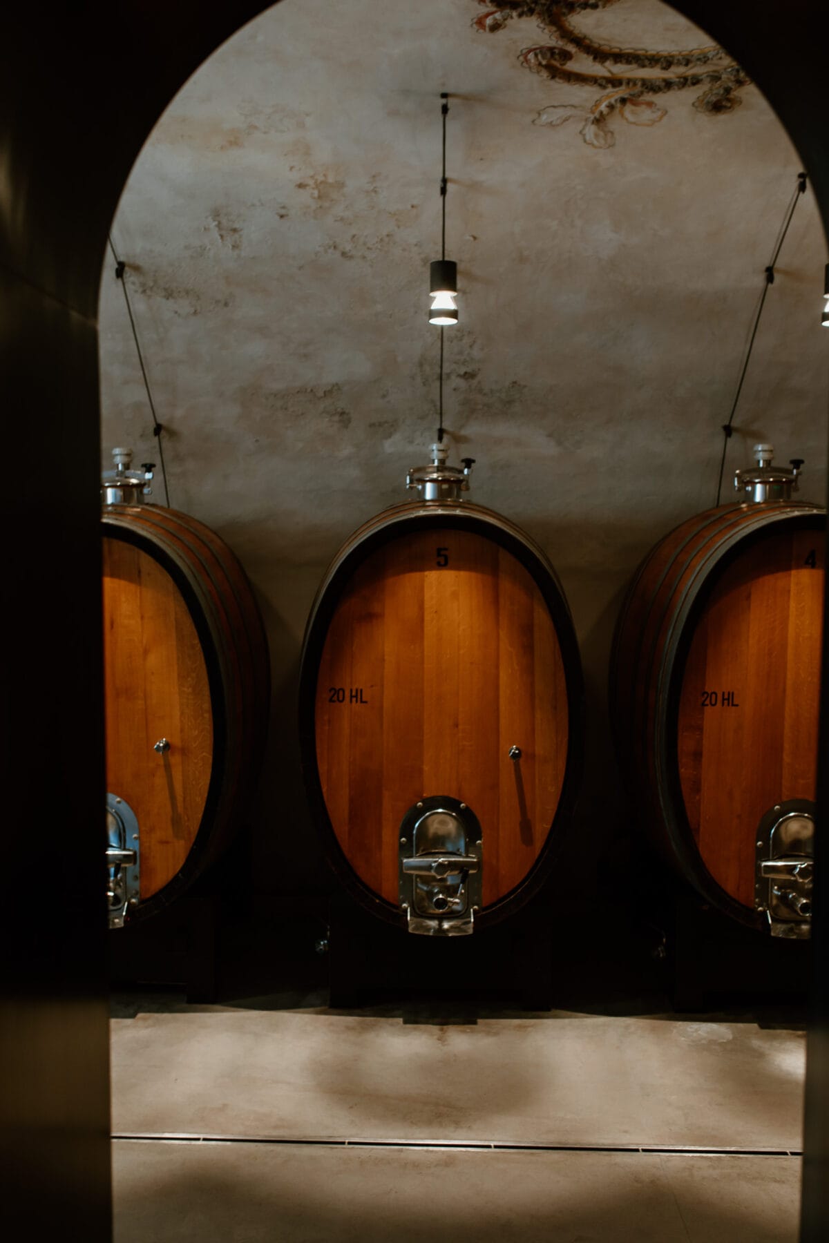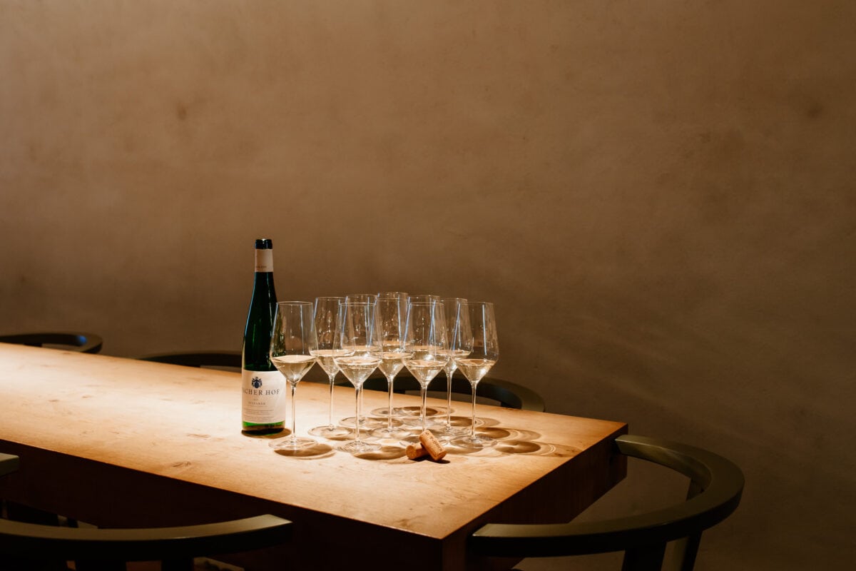 Die modernen Weinkeller, die auch architektonisch einen interessanten Kontrast zum geschichtsträchtigen Hof bilden, kann man im Rahmen einer Verkostung besichtigen.