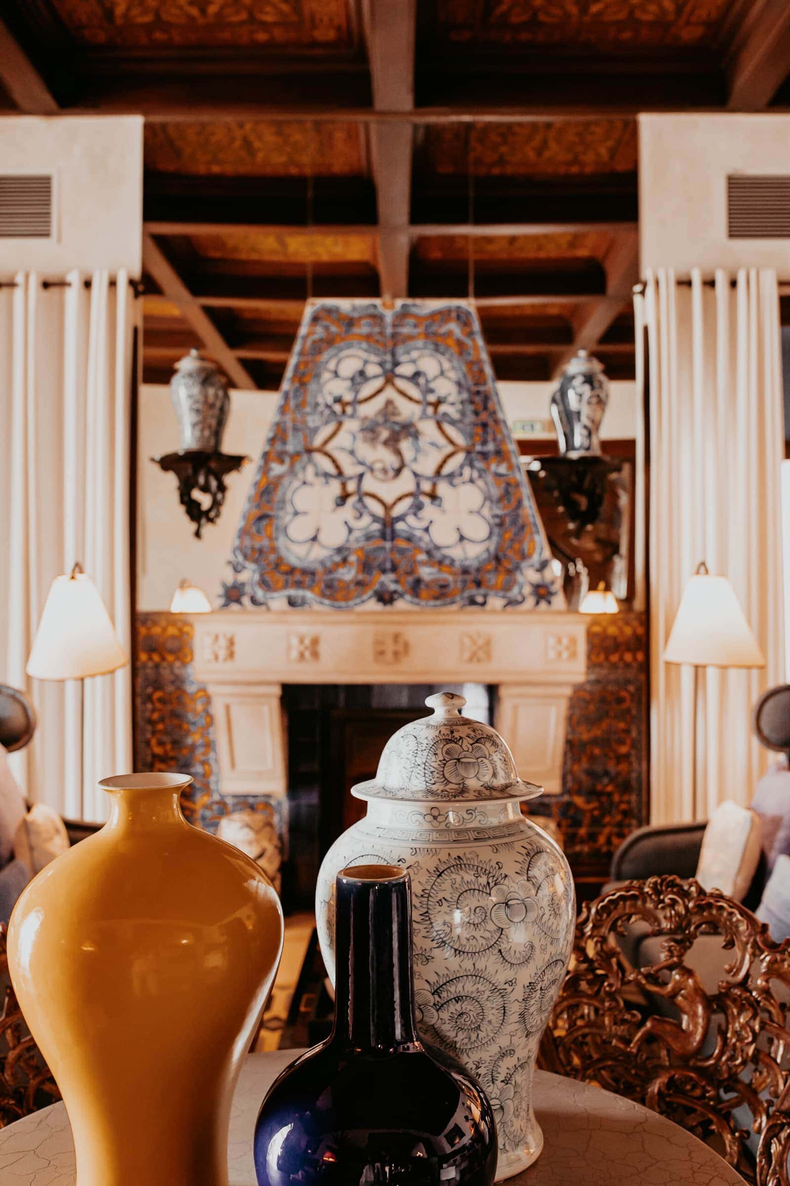 Today, the main house, with its richly detailed interior, feels like something out of a 1930s spy thriller; while the palm-fringed pool and pastel-colored rooms feel like a retro version of Miami.