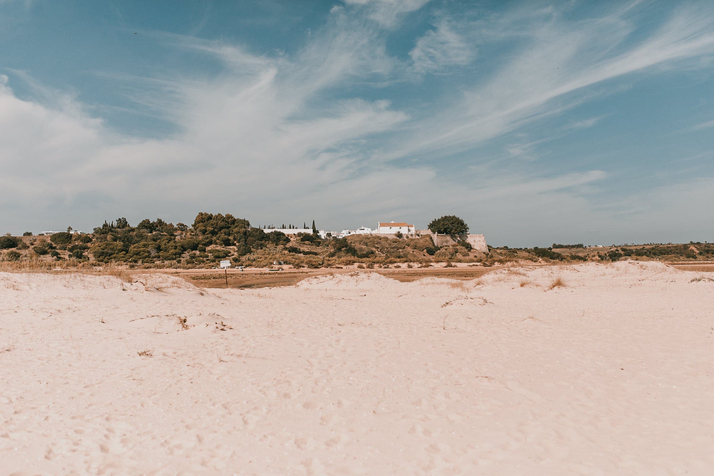 “Isn’t this relaxing”, Diana asks me and point at the vast beach around us. We are in Cacela Velha, a historic town on the coast and at the same time access to the Ria Formosa, a nature reserve that stretches from here for 70 kilometers along the coast to beyond Faro. The Ria Formosa is an extensive group of lagoons and famous for its richness of species. Since the water level in the lagoon depends on the tides, in places like Cacela Velha you can walk through the mudflats to the offshore island at low tide and plunge into the waves on the beach. But beware: in summer there are small fishing boats that shuttle between the beach and the mainland at high tide – in low season you have to either know when the tide is coming or swim all the way through the lagoon!