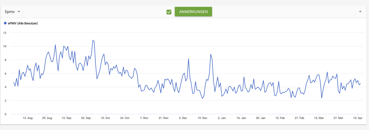 Hier siehst du die Entwicklung des EPMV für meinen Blog seit August 2022: