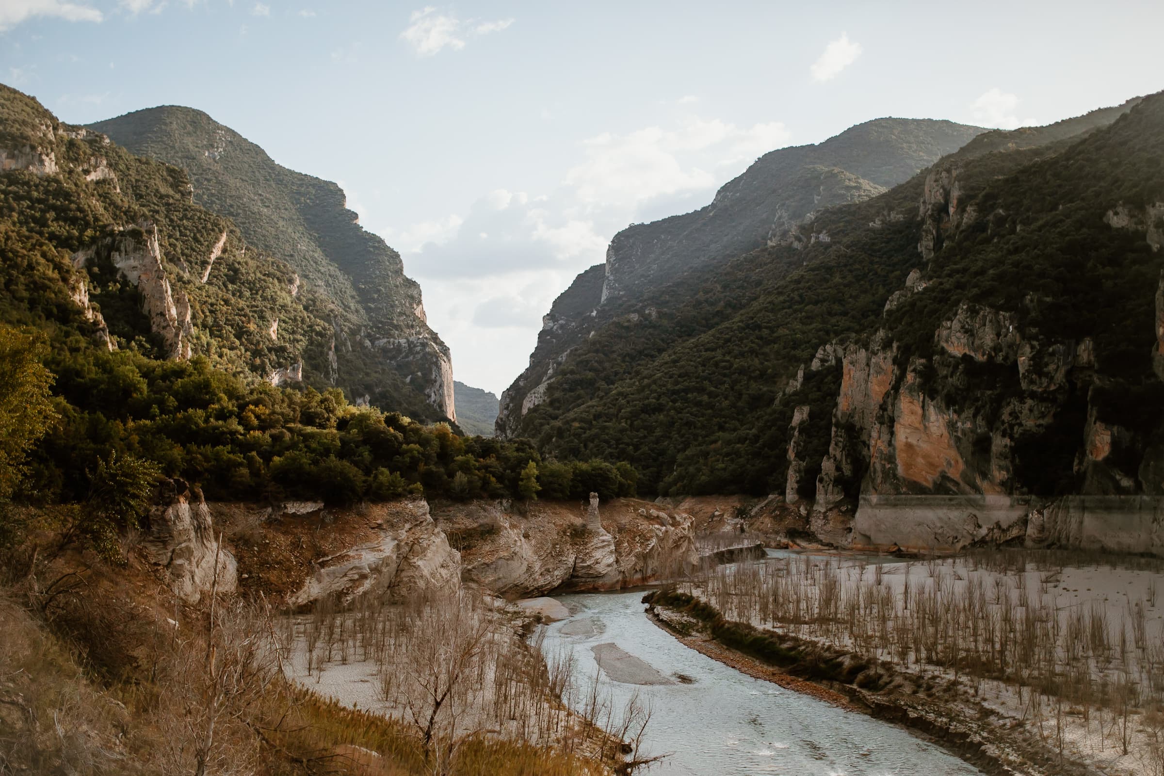 Leider fiel bei meinem Besuch die Kajaktour aus, denn dieses Jahr war durch den sehr heißen Sommer das Flussbett ziemlich ausgetrocknet und eine Durchquerung mit dem Kajak unmöglich. Ich mag mir gar nicht ausmalen, wie wunderschön es hier sein mag, wenn noch viel mehr türkisblaues Wasser hier durch die Schlucht schiesst! Aber auch so war die Wanderung durch den Congost de Mont-Rebei ein echtes Naturerlebnis!