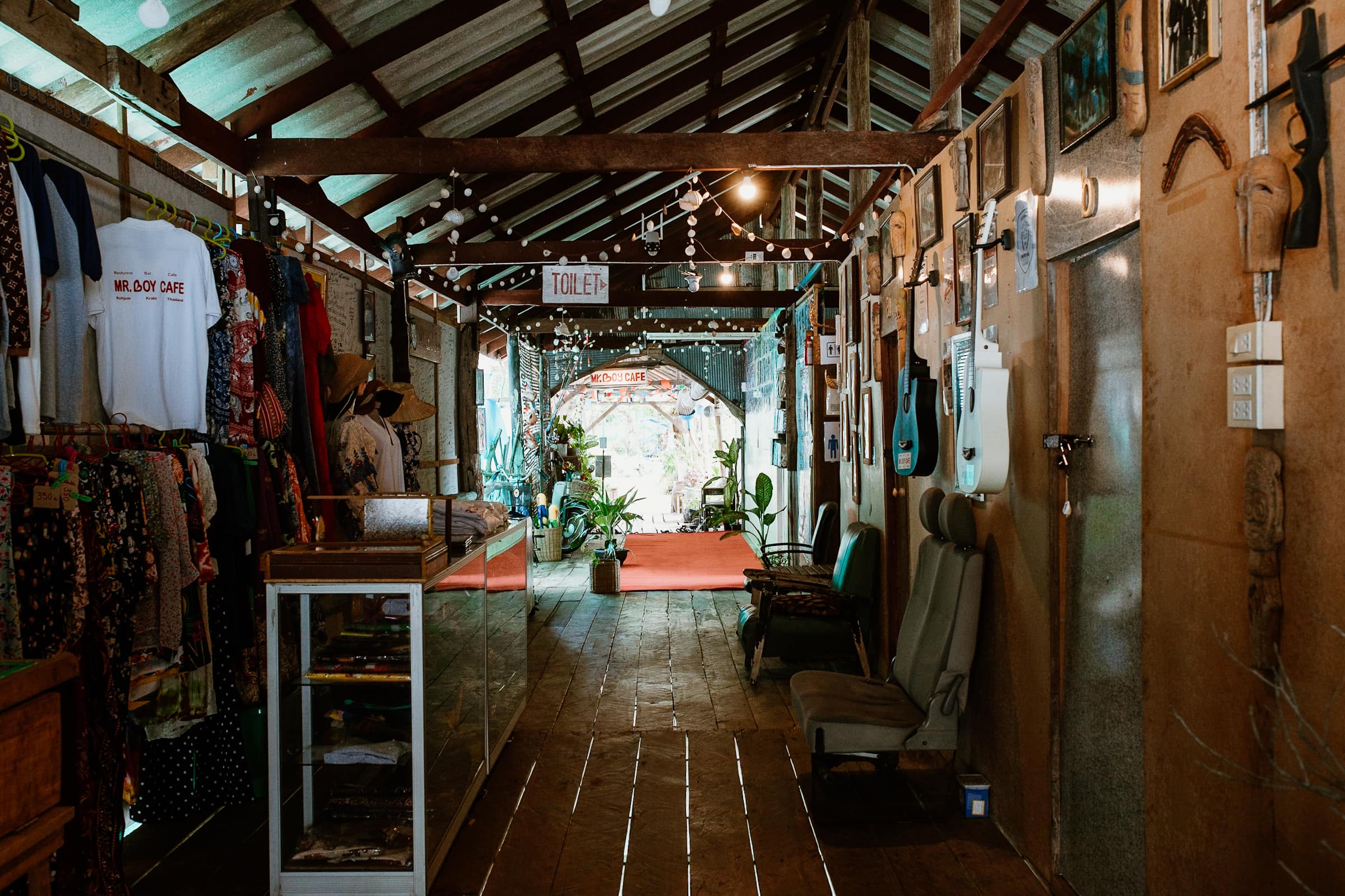 Aber der außergewöhnliche Vibe bei Mr. Boy macht das alles wieder wett: Das Café auf dem hölzernen Pier ist ein Sammelsurium aus Kunstgalerie, Restaurant, Bio-Garten und Hostel! Wie überall auf Koh Jum ist die Atmosphäre absolut gechillt und der Blick auf das ruhige Wasser und die Karstfelsen der Umgebung tut sein Übriges.