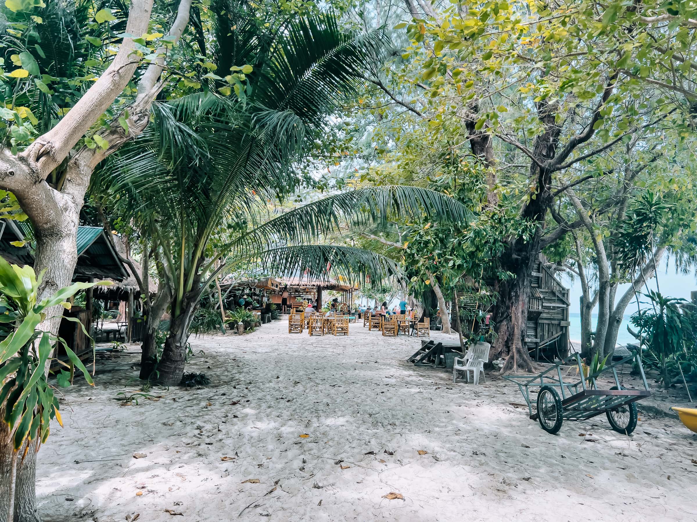 Zum Sunset Beach führt ein Dschungelpfad durch die Mitte der Insel zur Westküste. Hier soll man einen tollen Sonnenuntergang erleben können. Der Strand selbst ist wohl leider etwas vermüllt. Unterwegs kommst du auch an den Paradise Lost Bungalows* vorbei, dem einzigen Low-Budget-Resort der Insel.