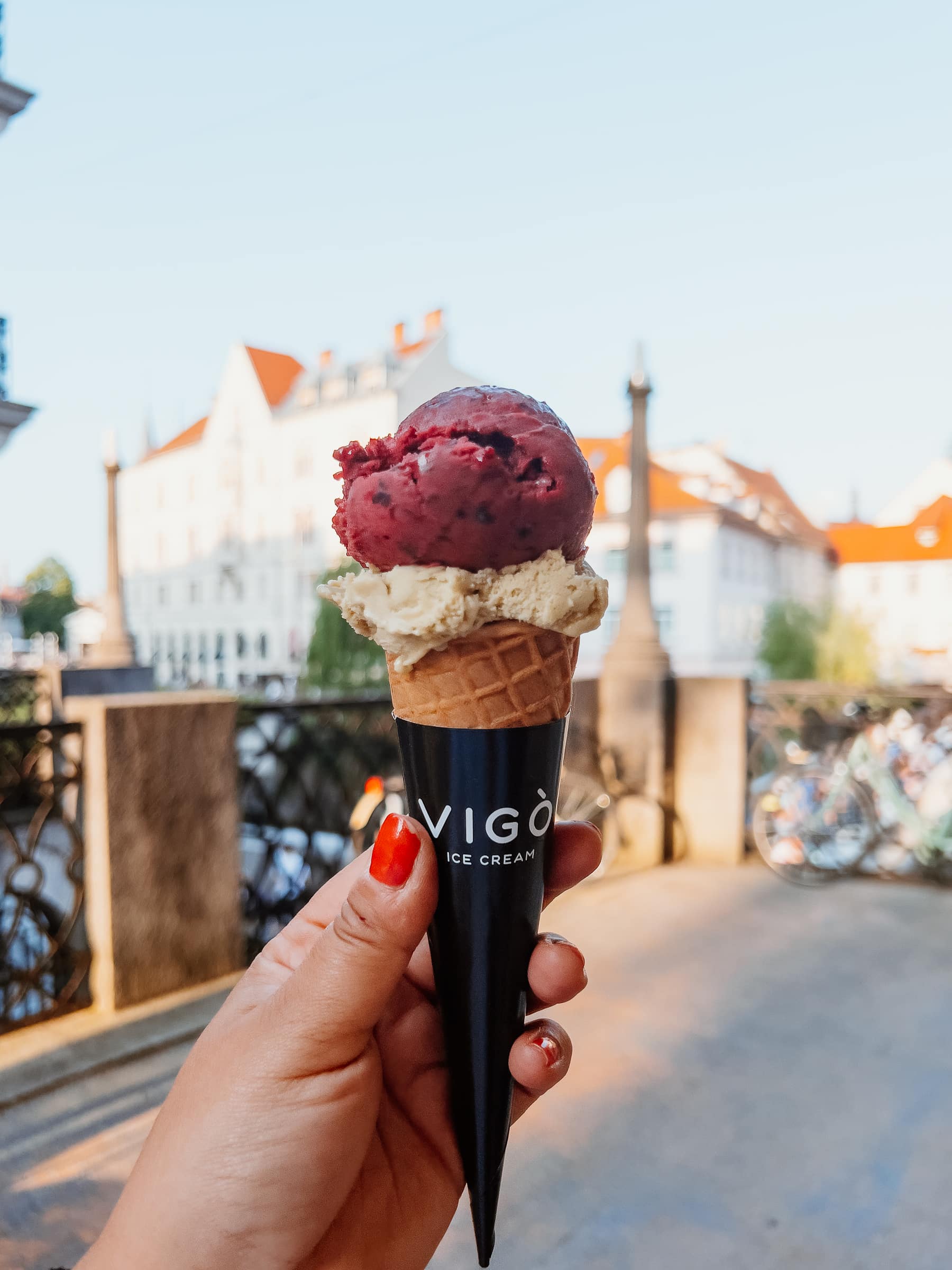 Vigò Der Schlange vor der Tür nach zu urteilen, muss es hier das beste Eis Ljubljanas geben. In jedem Fall aber ist es wirklich lecker. Tipp: Falls du keine Lust auf langes Warten in der Filiale in der Mačkova ulica hast: Etwas versteckt, aber dennoch zentral gelegen, befindet sich zwischen Kongressplatz und Uferpromenade mit dem Vigò Sorbetto eine weitere Filiale.