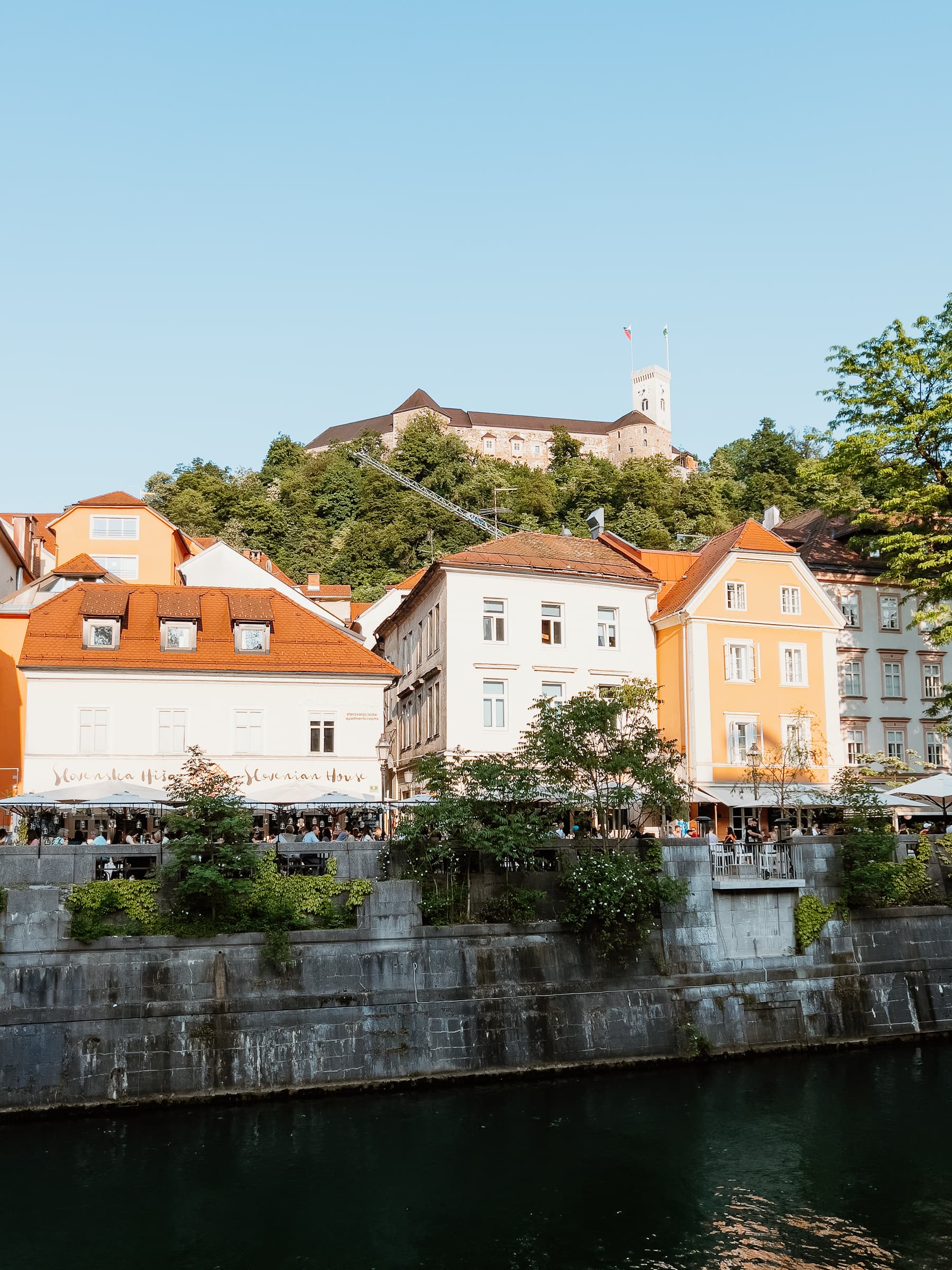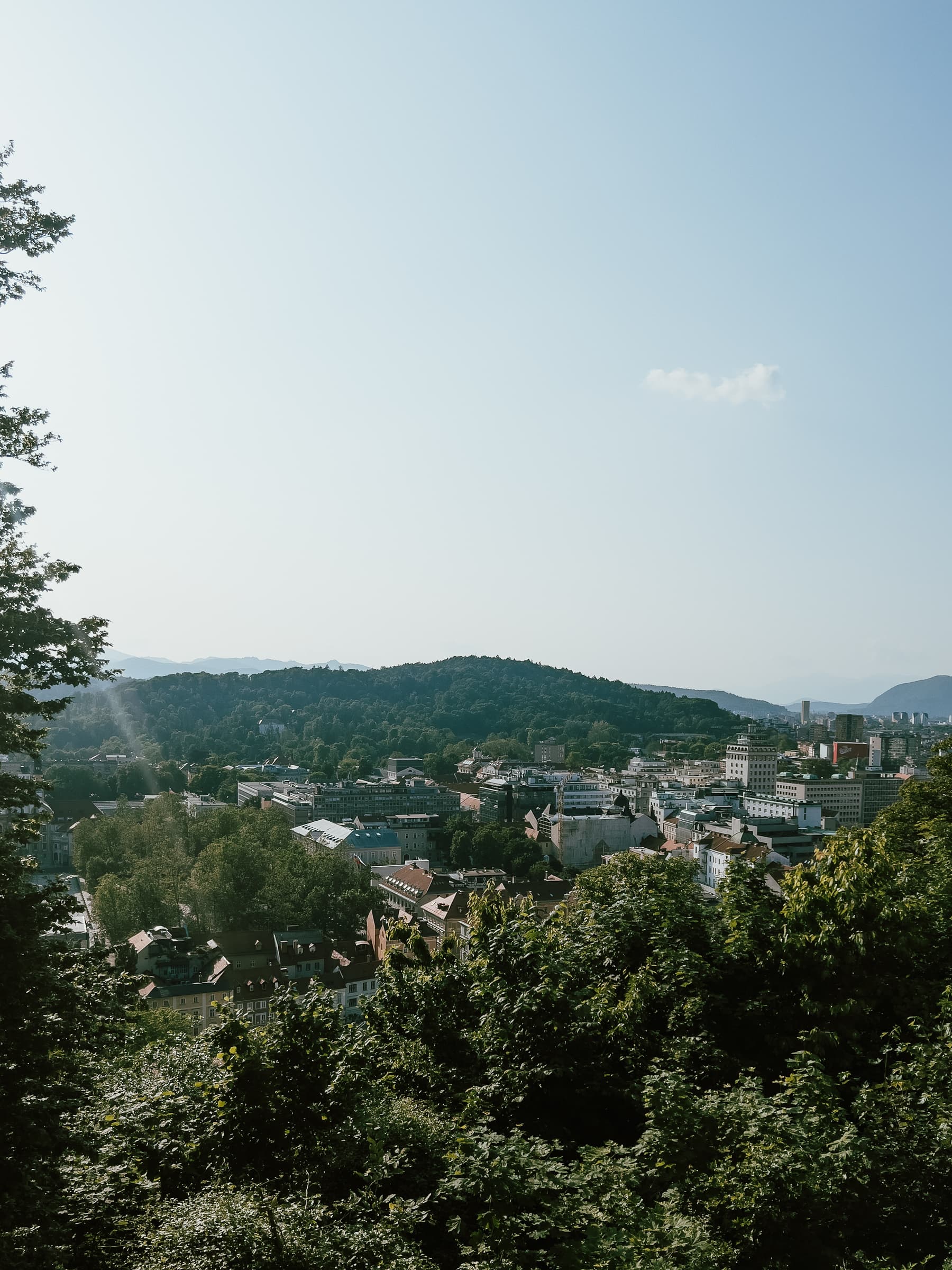 Unübersehbar thront die Burg von Ljubljana über der Stadt. Einen Besuch hier solltest du dir nicht entgehen lassen! Den Aufstieg schaffst du bequem zu Fuß: Es gibt einen ziemlich hübschen Weg nach oben, der auch schon unterwegs eine tolle Aussicht auf die gesamte Stadt und die Berge im Hintergrund bietet.