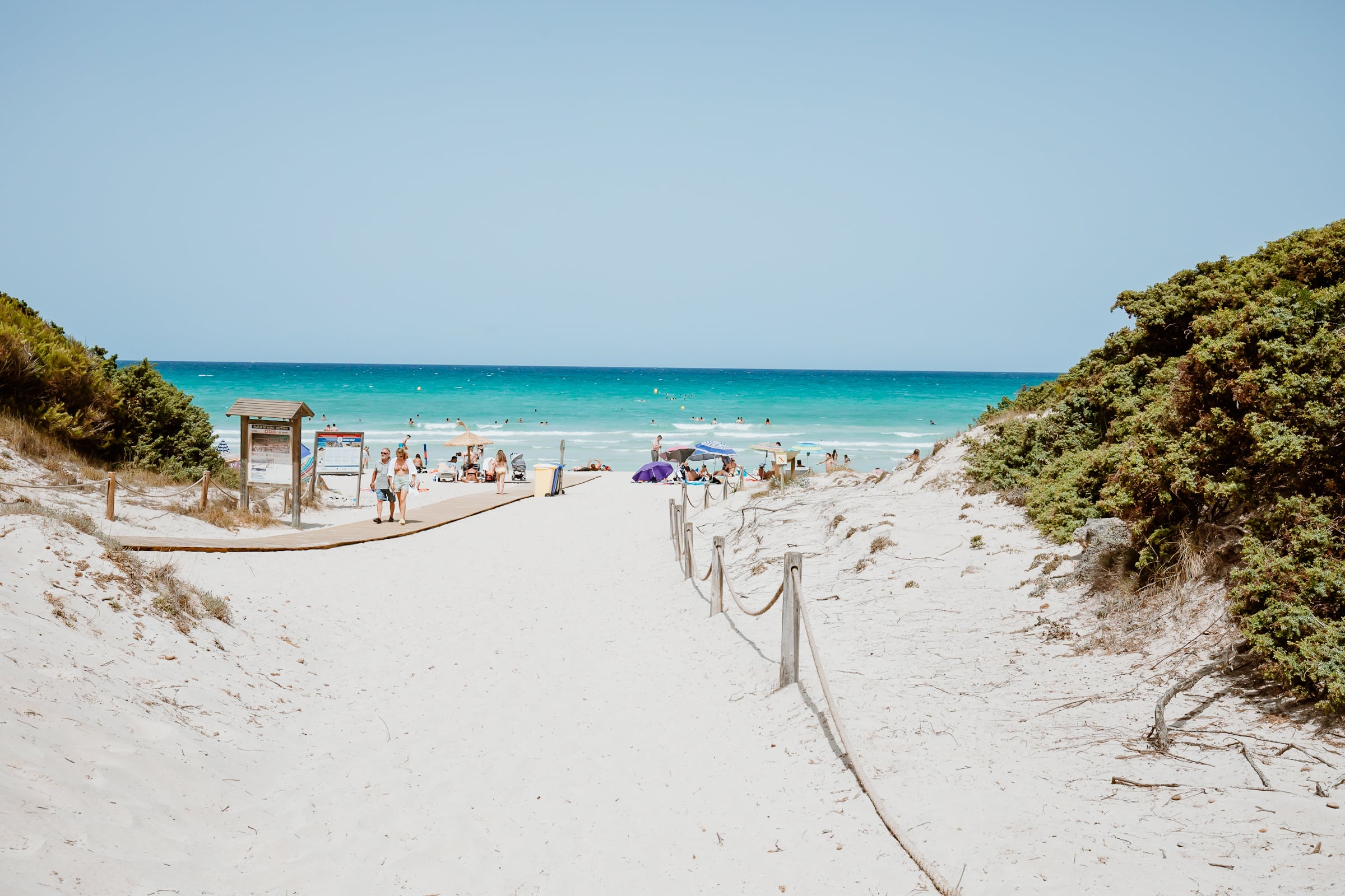 Ein bisschen sieht es hier aus wie in der Karibik: Es Trenc gehört zu den beliebtesten Stränden auf Mallorca und liegt mitten in einem Naturschutzgebiet. Große Strandbuden und Müll machen sind hier verboten. Ein Glück, denn der ca. sechs Kilometer lange Sandstrand mit glasklarem, türkisblauen Wasser ist wirklich ein schützenswerter Ort.