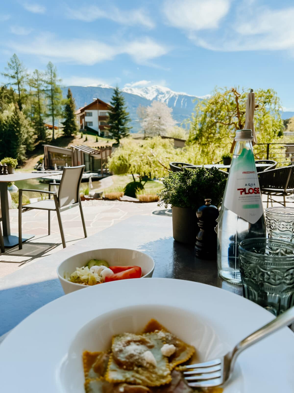 Foodies werden übrigens bei Vollpension und ganzen 4 Mahlzeiten am Tag mit Südtiroler Köstlichkeiten besonders verwöhnt. Serviert werden Frühstück, ein leichtes Mittagessen, eine Jause bzw. Kaffee und Kuchen am Nachmittag und ein fulminantes 5-Gänge-Menü am Abend. Für das Hauptgericht stehen immer 3 Gerichte zur Auswahl (Fisch, Fleisch oder vegetarisch) und am liebsten hätte ich sie immer alle probiert, weil’s so fantastisch geschmeckt hat.