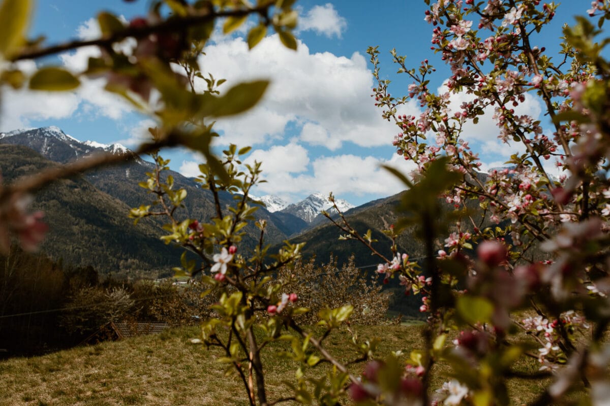 Heute sind viele Gegenden an meinem Ziel, dem Eisacktal, im Frühling übersät mit hellrosa blühenden Apfelbäumen. Und wie der Zufall es so will, zum nächsten Apfelbauern ist es vom Seehof Nature Retreat in Natz bei Brixen nur ein klitzekleiner Katzensprung! Frühlingsgefühle sind also vorprogrammiert.