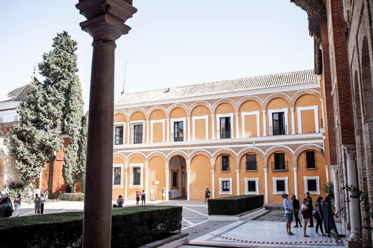 Nur einen kurzen Spaziergang von der Kathedrale entfernt befindet sich der königliche Palast Alcázar, der zu den meistbesuchten und wichtigsten Sehenswürdigkeiten in ganz Spanien zählt. Die gesamte Anlage ist wirklich riesig – und meist auch gut besucht. Plane genug Zeit für den Besuch ein (einen gesamten Vor- oder Nachmittag solltest du reservieren) und kaufe dein Ticket unbedingt im Voraus, um dir langes Anstehen zu ersparen.