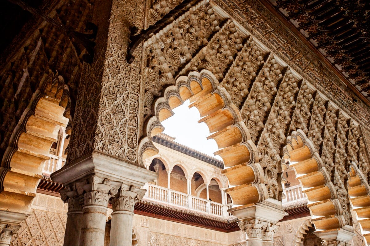 Ein absolutes Highlight des Alcázar ist der Patio de las Doncellas (Hof der Jungfrauen). Wahrscheinlich kommt dir dieser Innenhof schon bekannt vor: Er ist mit Abstand eines der beliebtesten Fotomotive im Alcázar.