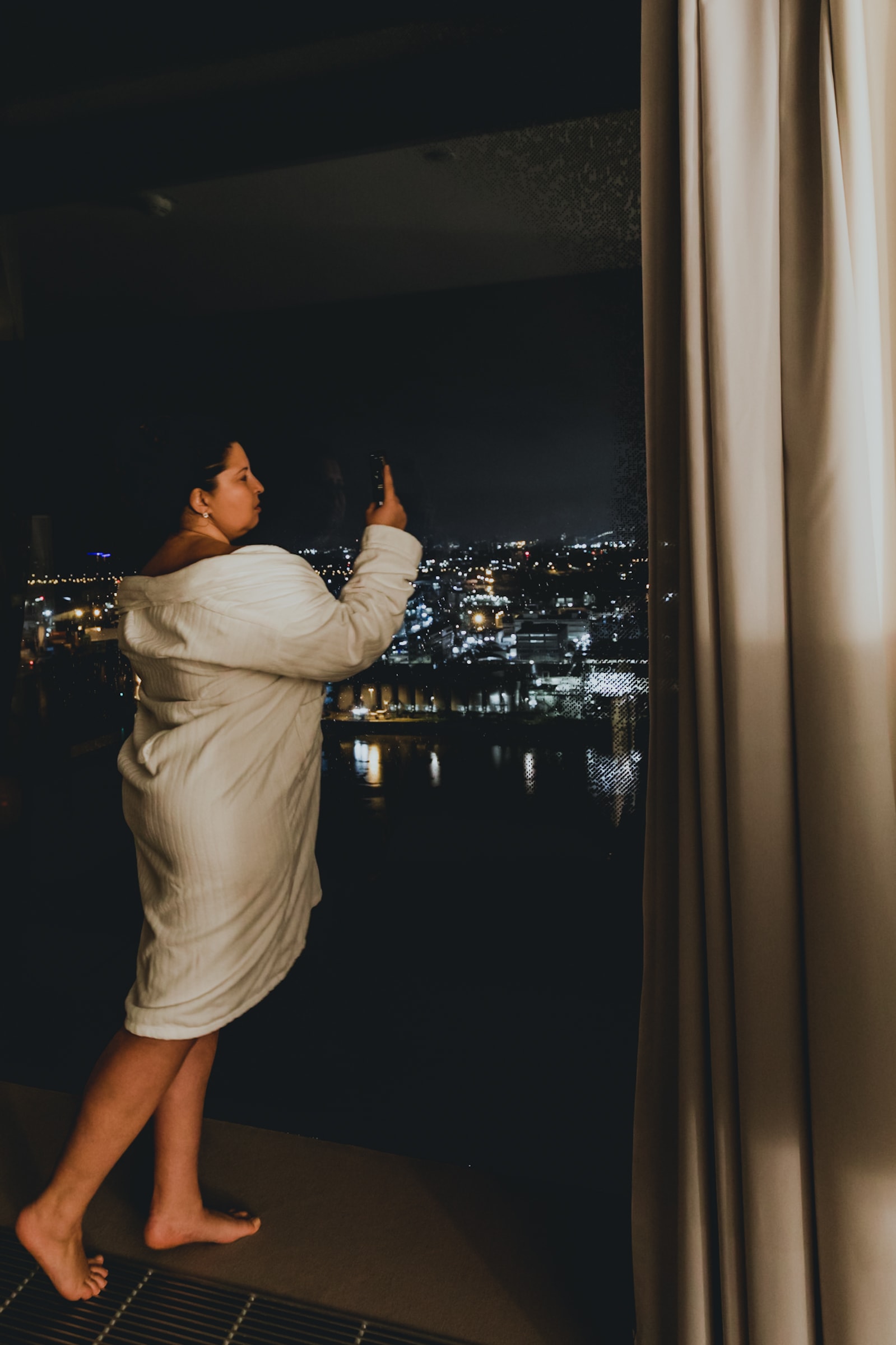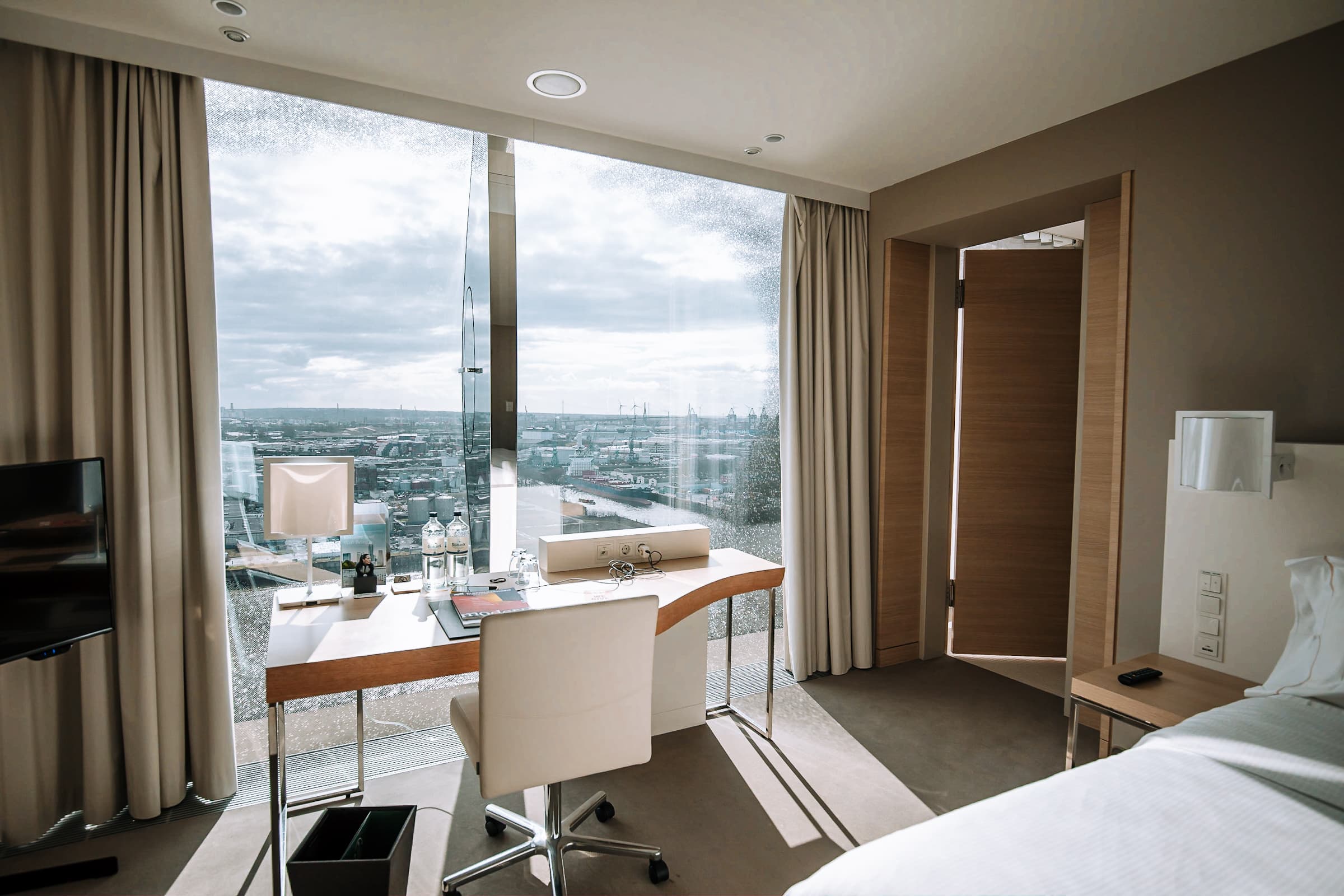 Im The Westin Hamburg gibt es verschiedene Zimmerkategorien, ich habe in der Kategorie “Studio” übernachtet. Aber auch aus den Premium-Zimmern mit dem Zusatz “Blick aufs Wasser“ solltest du eine ähnliche Aussicht haben. Ich empfehle dir, den Aufpreis für eine höhere Kategorie in Kauf zu nehmen, denn die Aussicht ist wirklich unglaublich beeindruckend und umso besser, je weiter oben man wohnt.