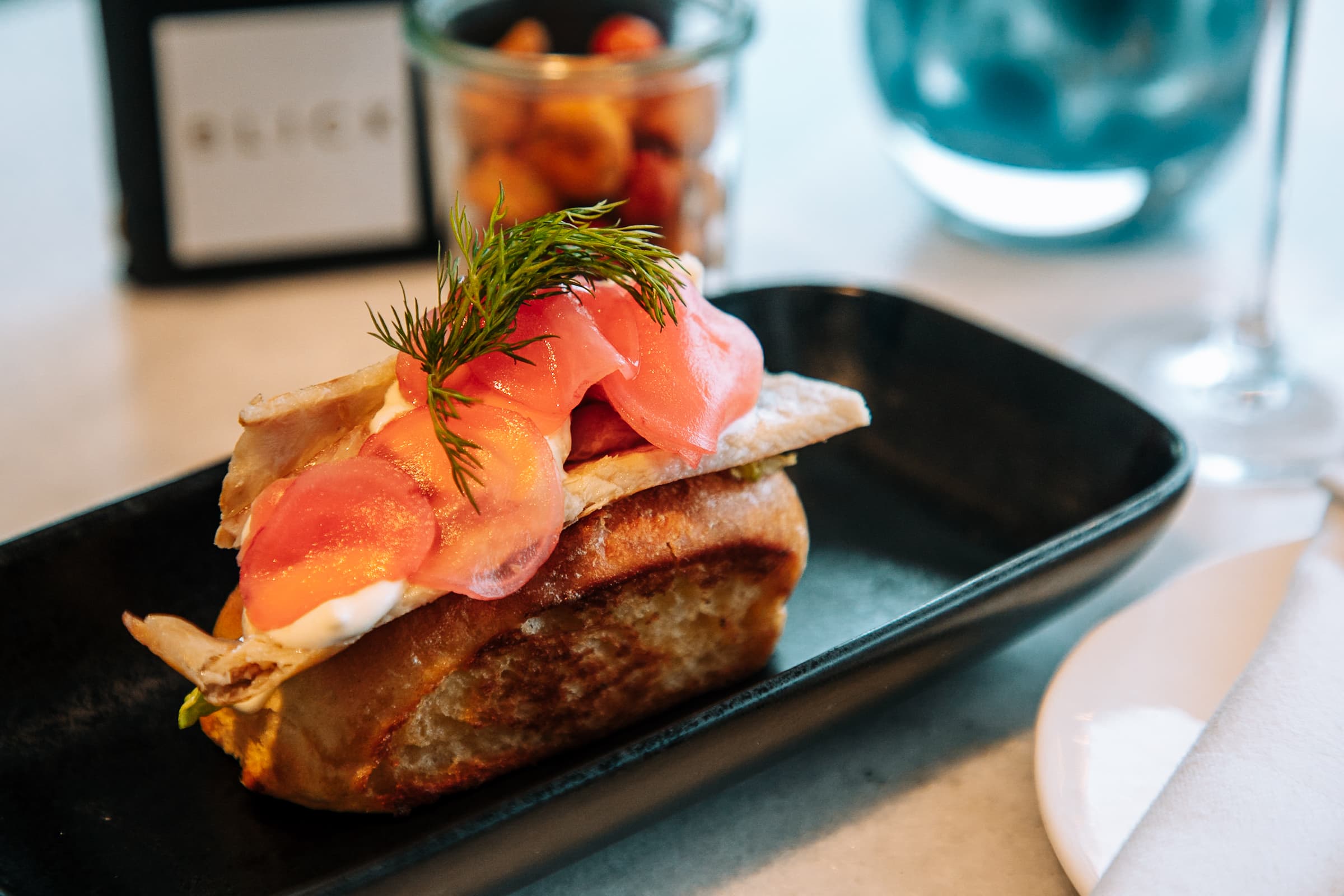 Für einen Drink oder Kaffee bietet sich die Blick Bar in der Lobby des Hotels an. Hier befindest du dich auf derselben Ebene wie die Aussichtsplattform der Elbphilharmonie, die du auch als Nicht-Hotelgast besuchen kannst (dann aber ggf. mit Wartezeit). Empfehlen kann ich dir hier den hauseigenen Cocktail Elphi Spritz sowie das Signature Duo aus einem Glas Champagner und einem Fischbrioche.
